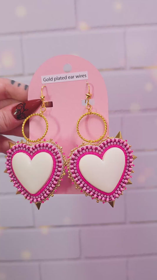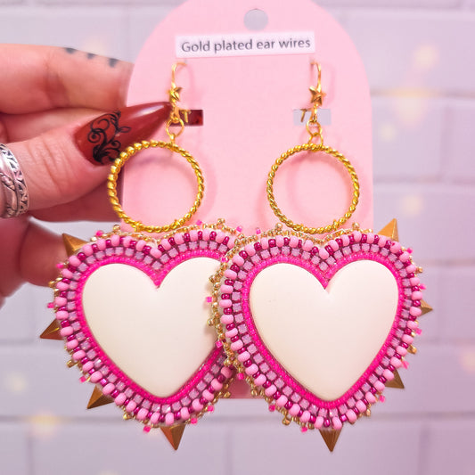 Large Pink and Gold Heart Spike Earrings