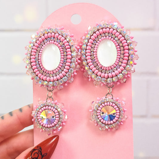 Large Pink Crystal Beaded Earrings