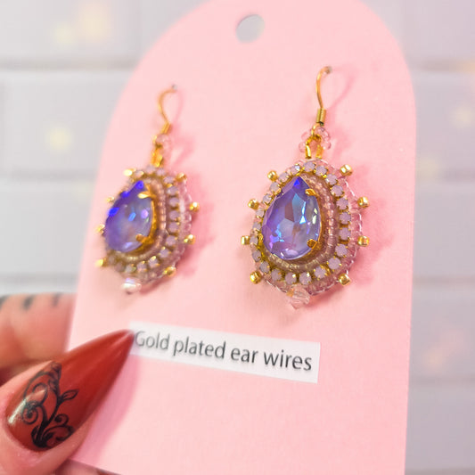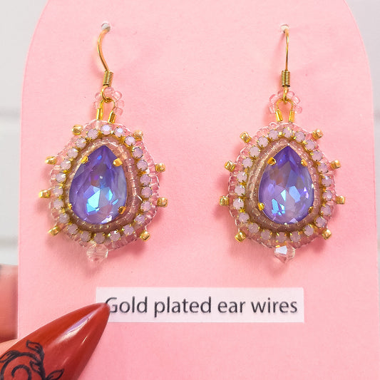 Iridescent Pink Victorian Baroque Inspired Hand Beaded Earrings