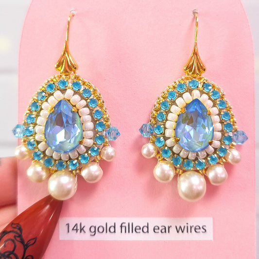 Blue Beaded Pearl and Crystal Earrings