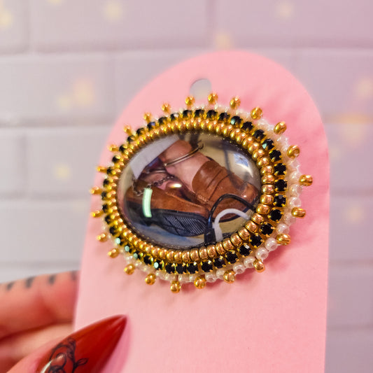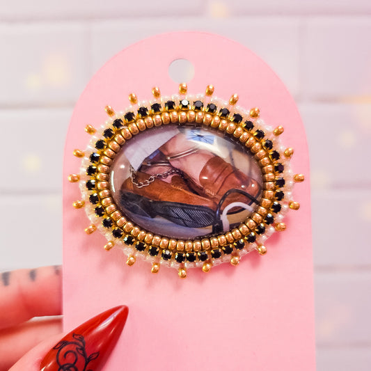 Luigi Mangione Cuff Ankles Brooch, 1.5 x 1.5 in.