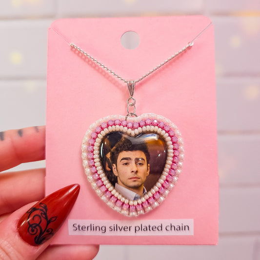 Luigi Mangione Pink and White Heart Necklace