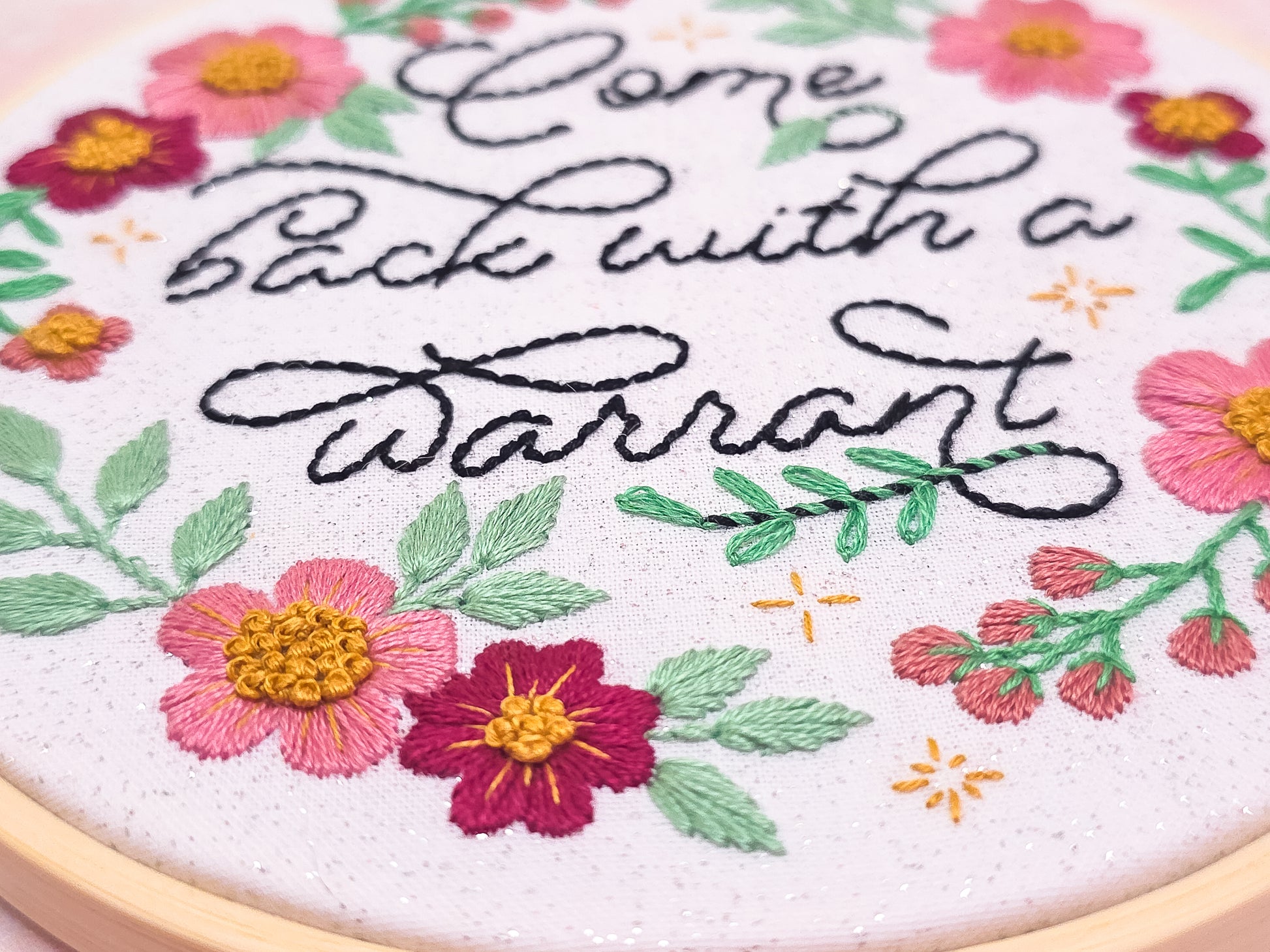 Come Back With a Warrant Embroidery Kit - Beginner Friendly